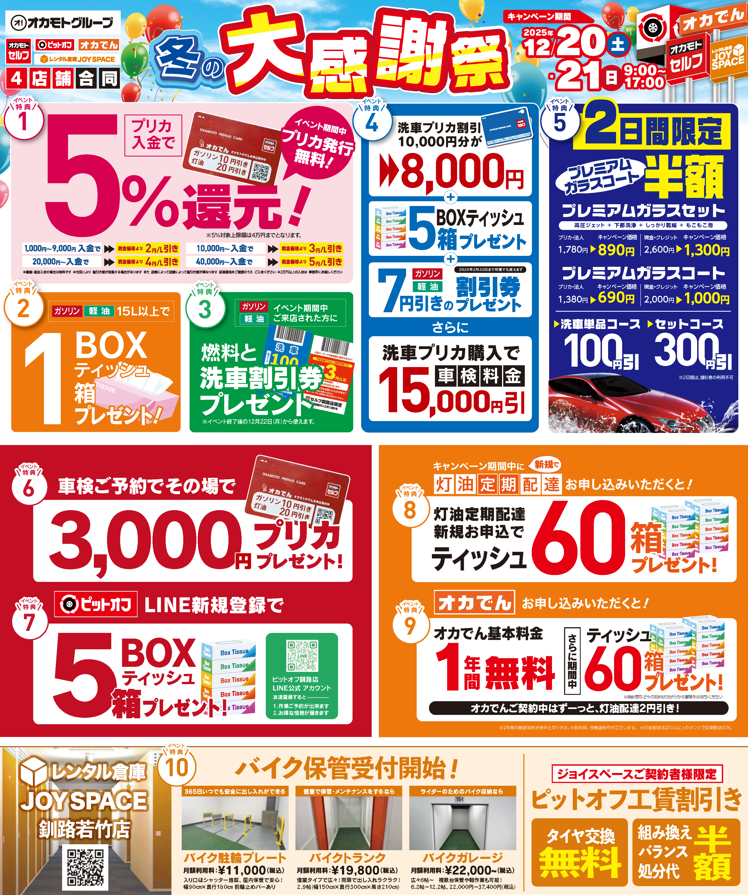オカモトカード割引・・・オカモトエンジョイカード でお支払いの場合、さらに1円引きになります。