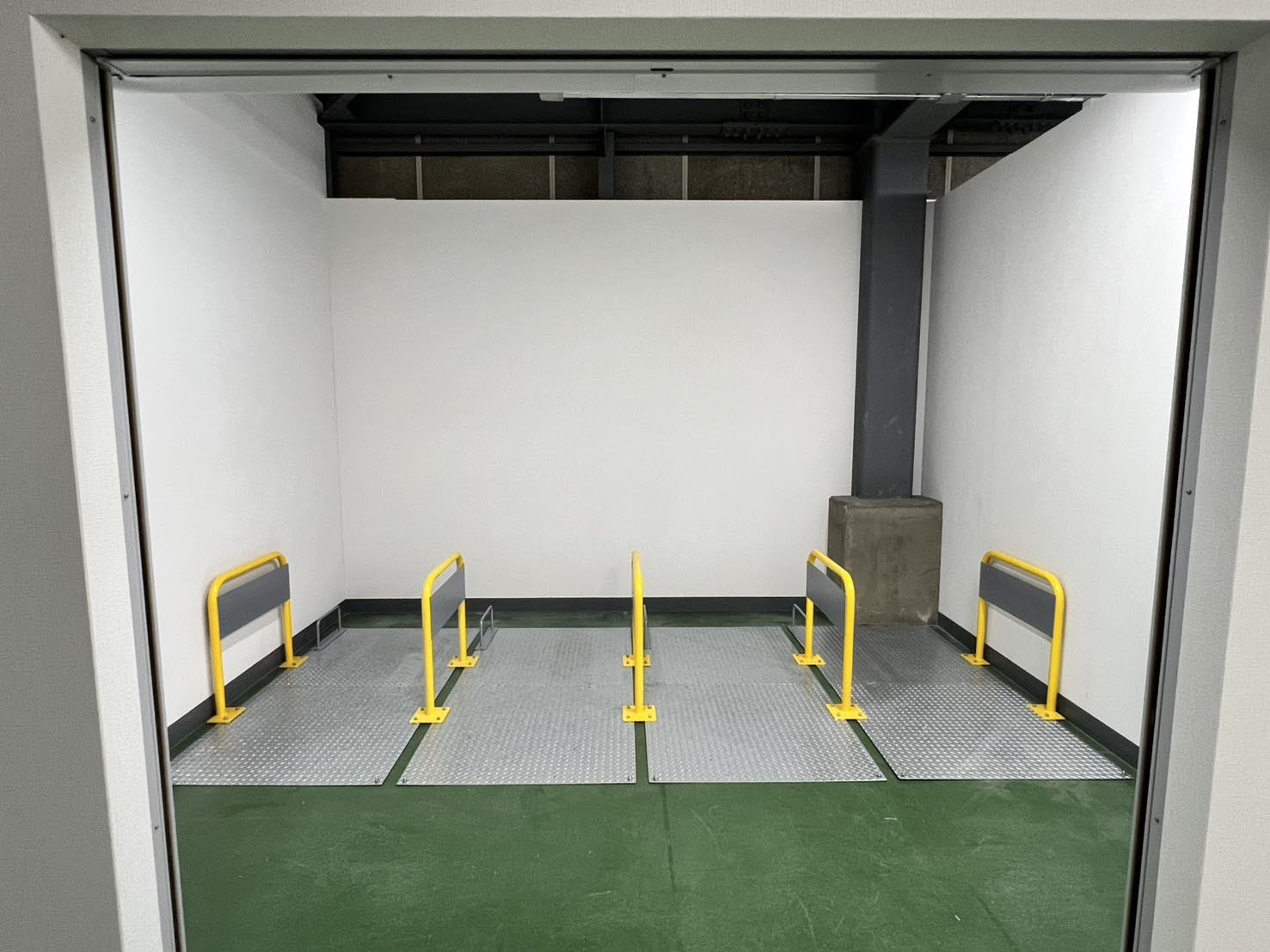 入口はシャッター施錠、一台につき一本鍵をお送りいたします。