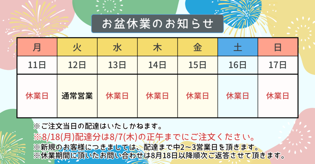 ※翌日分の電話注文は、当日15:00までの受付とさせていただきます。