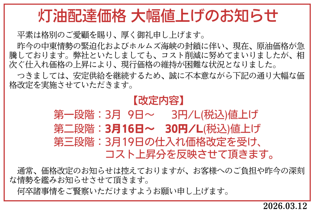 ※口座振替の場合は、+2円/L高となりますので、予めご了承ください。