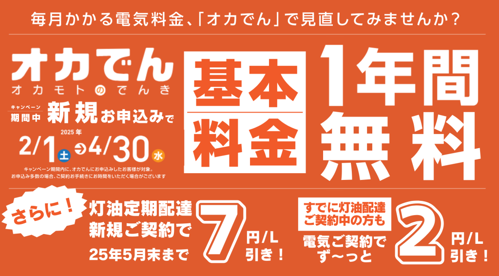 オカでんセット割引・・・オカモトの電気をご契約の場合、2円引きになります。